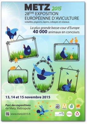 La France est heureuse d’accueillir en 2015 le Congrès Européen d’Aviculture et la 28ème Exposition Européenne de volailles, pigeons, lapins, cobayes et oiseaux. Après Paris en 1947 et Strasbourg en 1979, c’est la ville de Metz qui souhaitera la bienvenue à l’ensemble des passionnés d’aviculture. ...