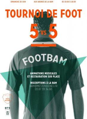 En 2015, ce sera déjà la troisième édition d’un FOOTBAM qui célèbrera les liens affectifs entre football et musiques actuelles. Sur un terrain judicieusement situé au pied de la BAM, musiciens, acteurs des musiques actuelles, associations du quartier ou simples footballeurs du dimanche vont tâter du ballon sur fond d’une bande son enflammée par des DJ de niveau Premier League. Alors pour ce premier FOOTBAM placé sous le sceau des Ondes Messines, qui va l’emporter ?