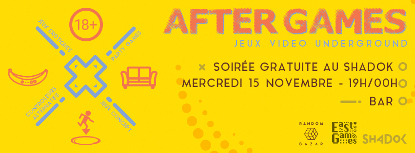 ? Random Bazar revient avec une journée gratuite After Games le 15 Novembre à Le Shadok. La grande nouvelle ? Cette édition, Random Bazar s'associe à East Games pour l'#IndieGameContest, en inscrivant cet évènement dans le cadre de l’IGC!