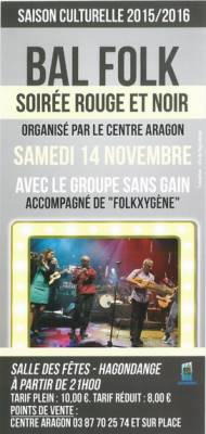 Grand Bal folk sur le thème le Rouge et le Noir, avec le groupe Sans Gain, accompagné par "Folkxygène".