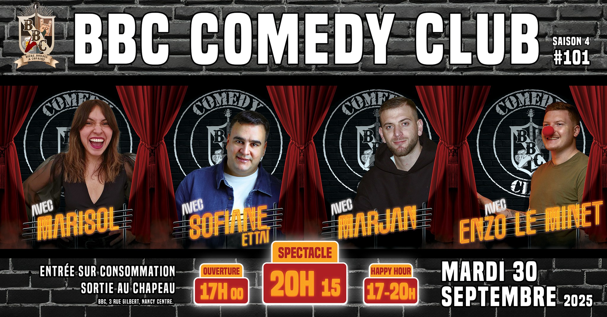 ?? Édition #101 du BBC Comedy Club (saison 4) – Mardi 30 septembre à 20h15 !