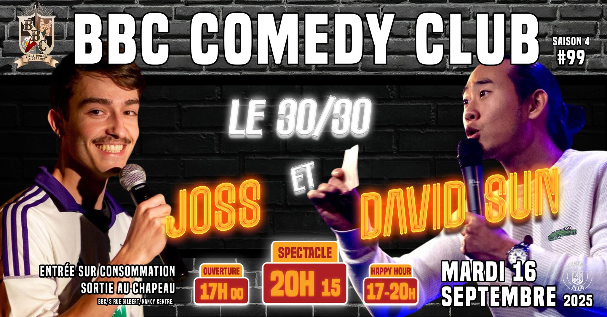 ✨ Au programme : un 30/30 avec David Sun et Joss. Deux humoristes, deux univers, 30 minutes chacun pour vous faire exploser de rire !
