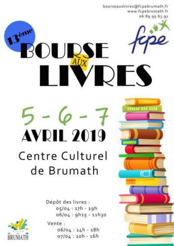 Le samedi 6 et le dimanche 7 avril 2019 au Centre Culturel de Brumath, l’association de parents d’élèves de la FCPE Brumath organise sa 13ème bourse aux livres au profit des écoles brumathoises.