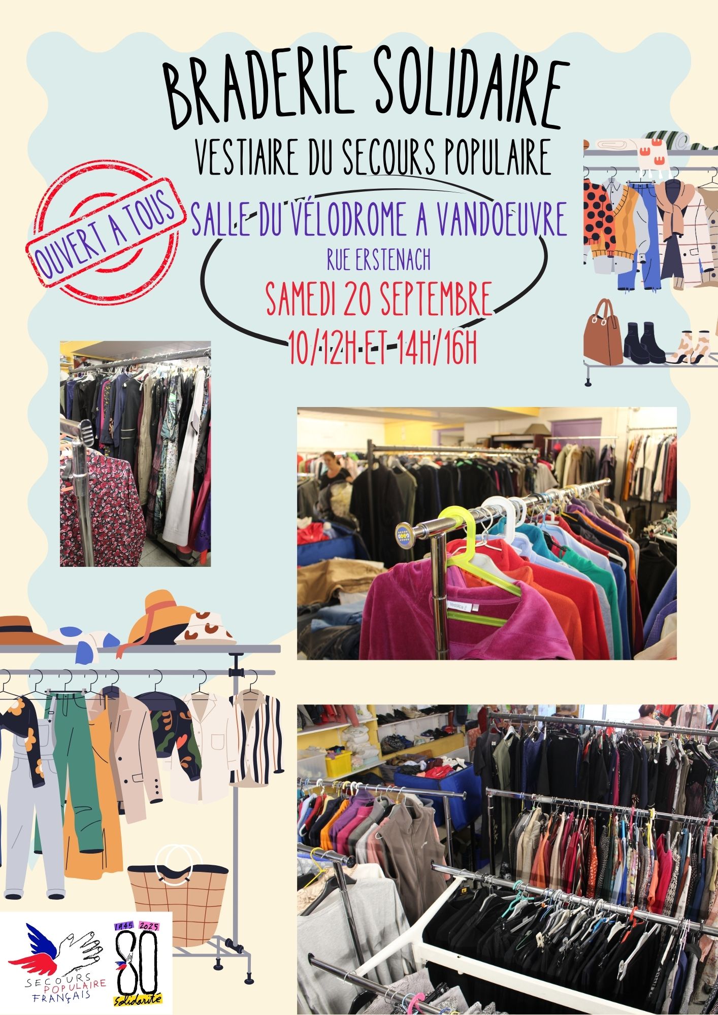 Le Secours populaire quitte ses locaux de la rue du Charmois pour investir la salle du Vélodrome, rue Erstenach à Vandoeuvre, pour le temps d'une journée, et ainsi pouvoir sortir de ses réseves plusieurs milliers de vêtements et d'accessoires. Venez chiner, il y aura de tout, pour tous les âges, et de tous styles, mais toujours à petits prix.