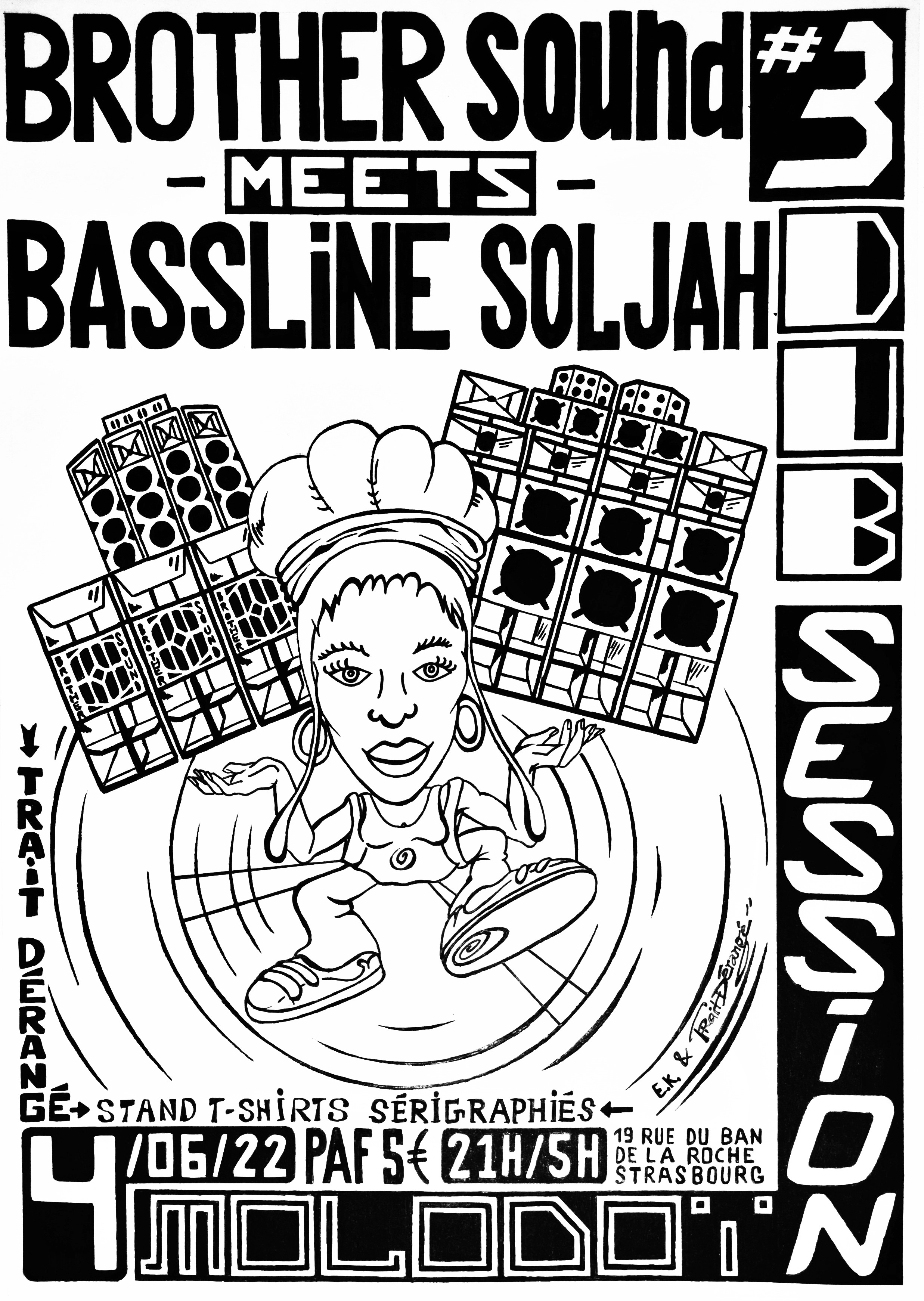 Composé de plusieurs sélecteurs et amis qui officient dans l’ombre, tous passionnés par le mouvement « Roots & Culture », Bassline soljah diffuse une musique allant du roots des années 70 jusqu’à des productions plus récentes de type dub UK. Organisateur des soirées « Dub Attack » à Nancy, s’est armés de sélections et de dubplates maison que Bassline soljah sillonne l’Est de la France pour partager cette passion du sound system. Sa sono artisanale, fabriquée par les membres du crew dans la plus pure tradition des sounds jamaïquains et anglais, fait vivre une expérience sonore et physique caractéristique mais à la fois singulière des sound system dub.