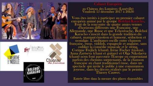 Vendredi 15 décembre 2017 à 20h30, vous êtes invités à participer au premier cabaret européen animé par le groupe Bolchoï Karacho.