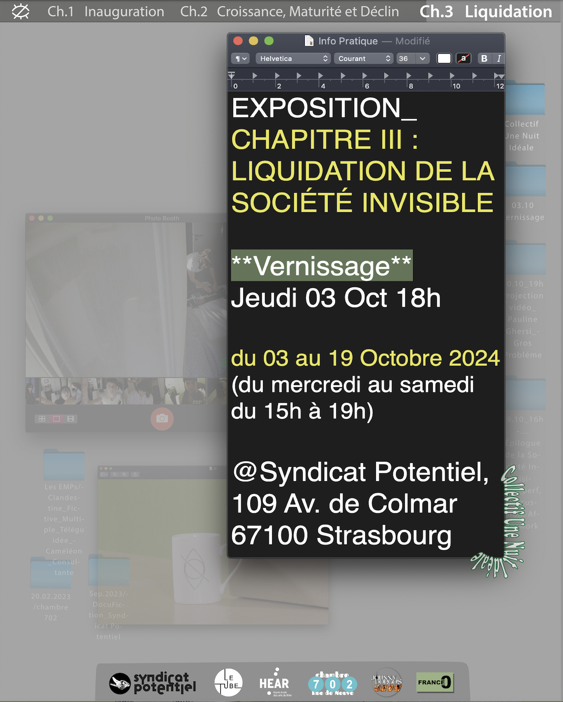 Samedi 19 oct 16h-18h : Epilogue de la Société Invisible