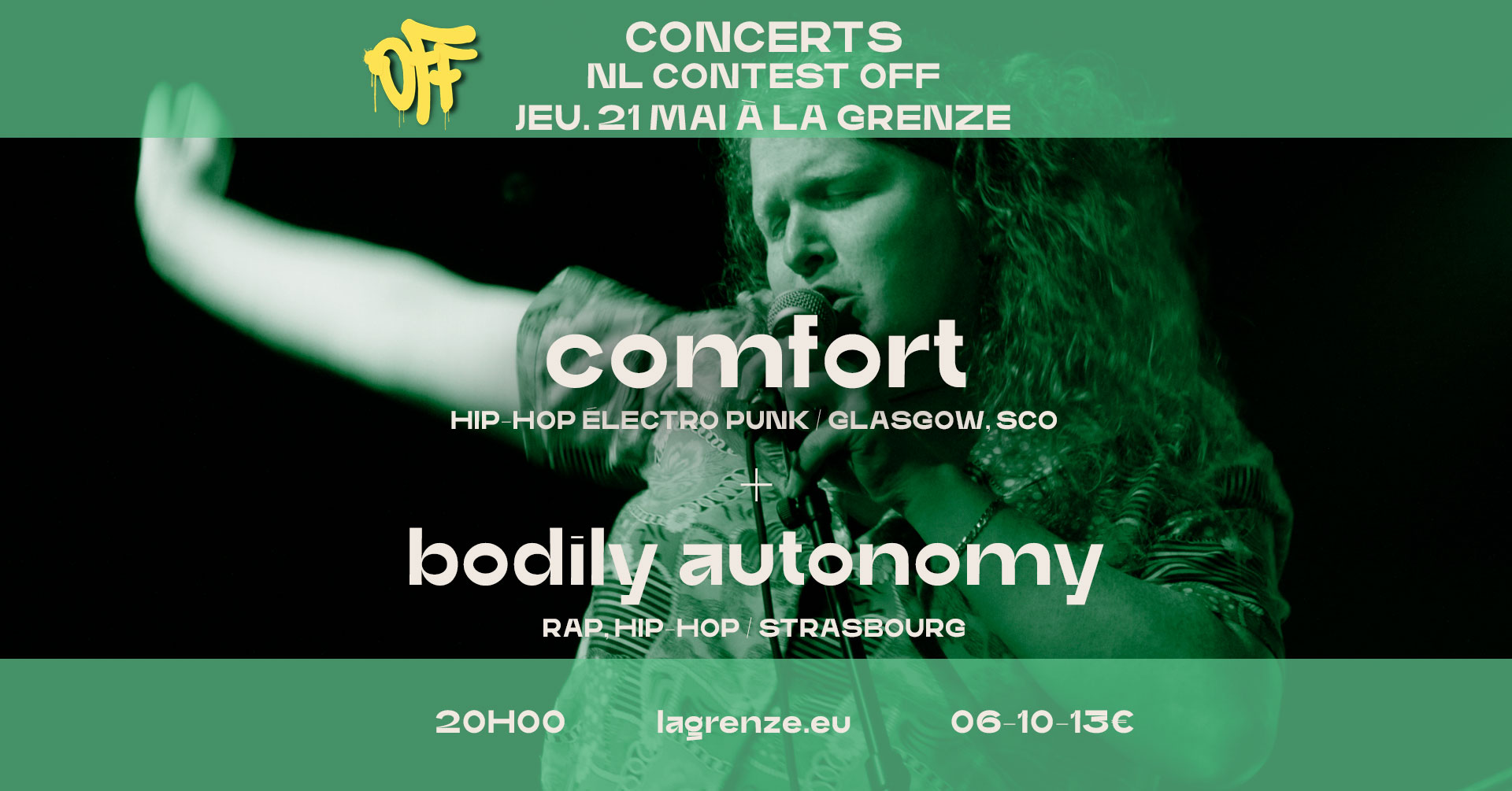 Comfort + Bodily Autonomy en concert le jeudi 21 mai 2026 à 20h00, 23 rue Georges Wodli à Strasbourg