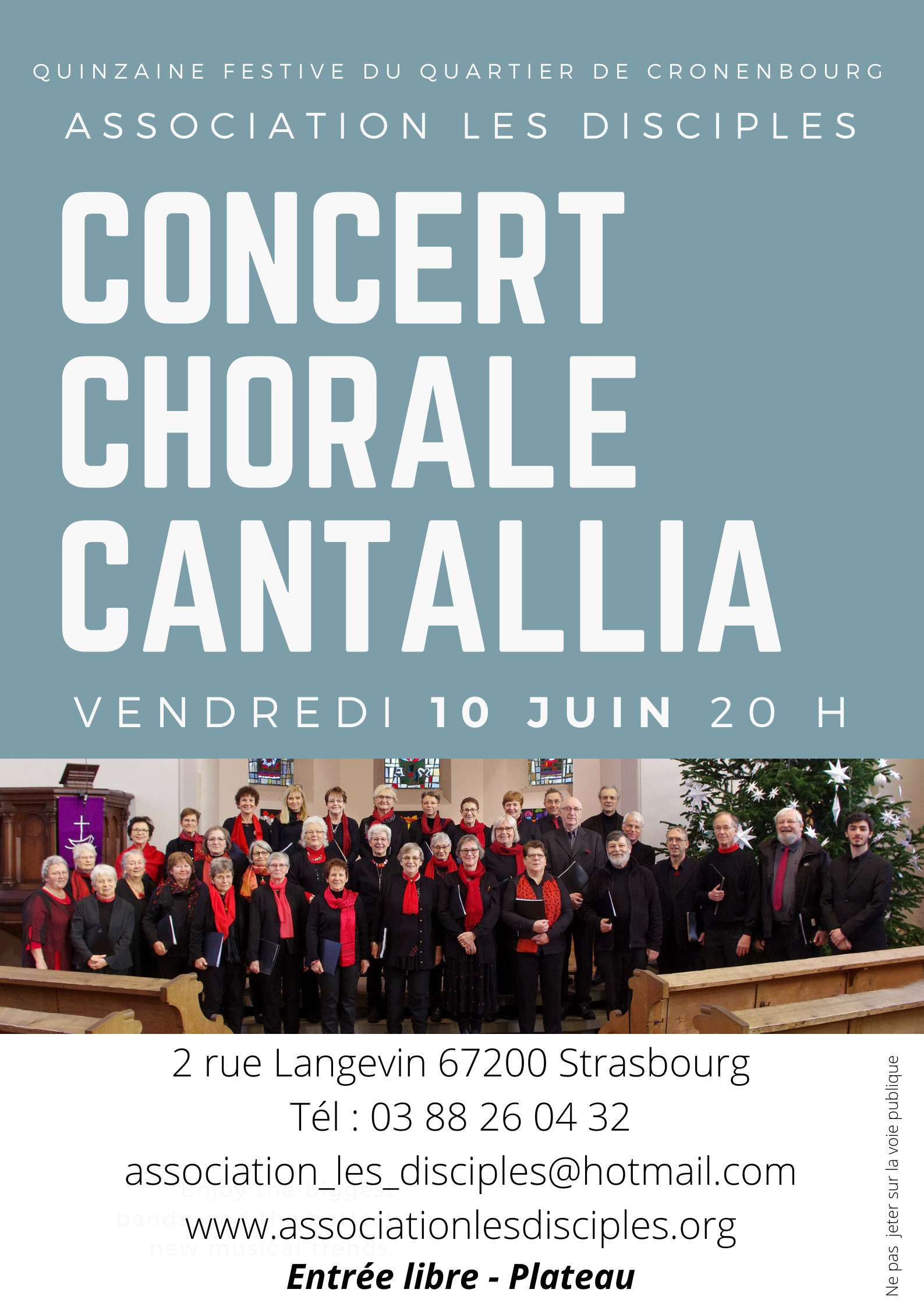 Dans le cadre de la quinzaine festive l'association Les Disciples vous invite à un concert avec la Chorale Cantallia le 10 juin 2022 à 20h