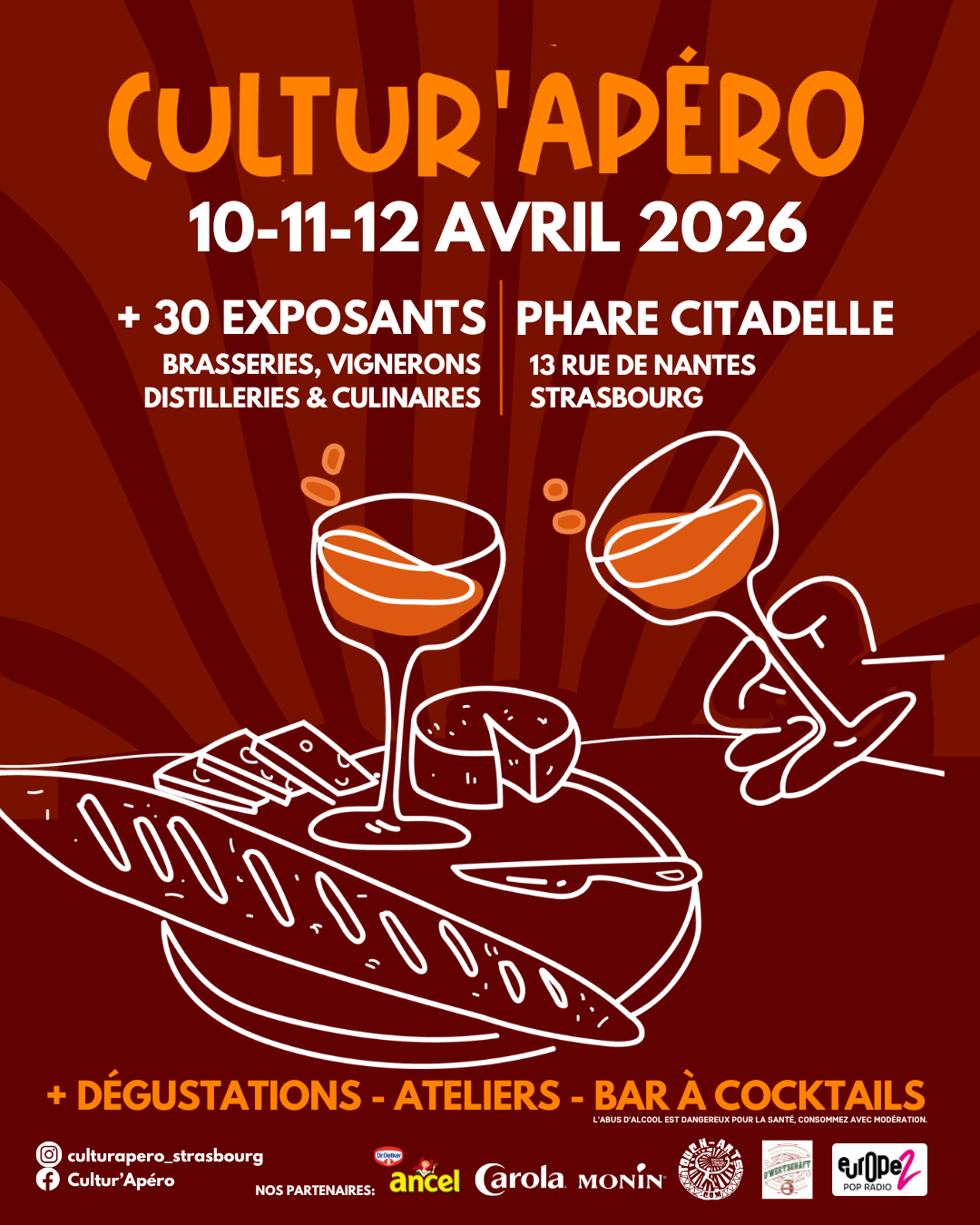 Le festival de l'apéritif 'Cultur'Apéro' est de retour pour une 4ème tournée les 10-11-12 avril 2026 au Phare Citadelle 13 rue de Nantes