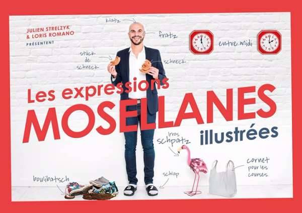 "Le SPATZ, la/le SCHNECK, SPRITZER dans la FRATZ, aller chercher son RÉPLO en SCHLAPS, RATCHER️, être NAREUX, CLENCHER, LE CAFÉ KLATSCH, "Comment qu’c’est GROS? ” ♂️, êttre KLATZ, le RATZ, le RAOUDI..."Julien Strelzyk (Humoriste) et Loris Romano (Photographe) se sont amusés à illustrer 38 expressions mosellanes sur 40 pages.