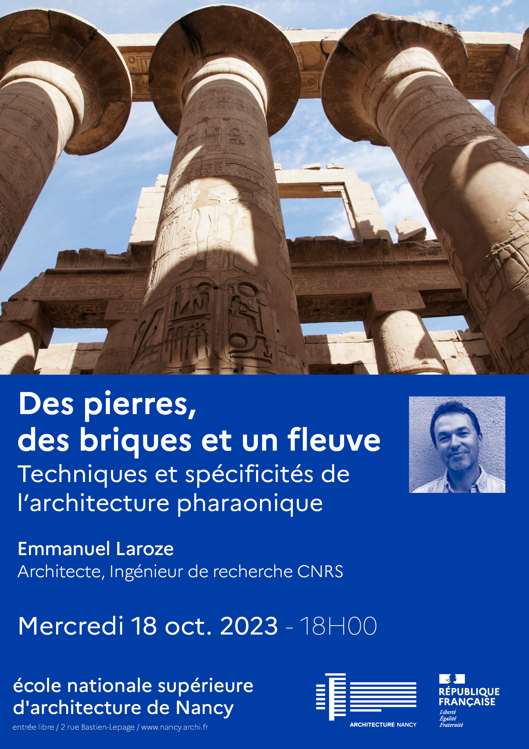 Conférence organisée par l'école nationale supérieure d'architecture de Nancy, présenté par Emmanuel Laroze, architecte et ingénieur de recherche au CNRS spécialisé dans l'étude du bâti et des techniques de construction antiques.