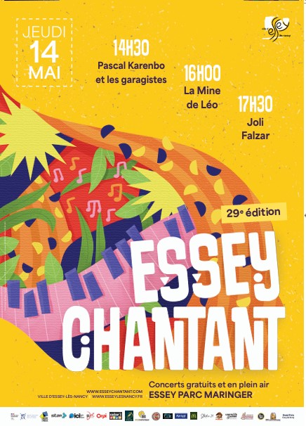 Pour sa 29ème édition, Essey chantant propose un programme de très belle qualité : dès 10h00 c'est la Trock à Zik, brocante musicale, à 14h30 début des concerts avec Pascal Karenbo et les garagistes, blues rock style Paul Personne, puis à 16h00 c'est La Mine de Léo avec la voix chaude de Léonore dans un univers joyeux et révolté et enfin à 17h30, place à la tête d'affiche Joli Falzar, chanson française cuivrée à l'accent espagnol. Durant les changements de plateau (15h30 et 17h00) la chorale de l'école de Mouzimpré proposera un mini récital.