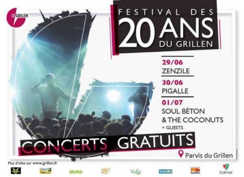 Une salle de spectacle qui mérite bien plus qu’une fête d’anniversaire... un véritable festival ! Organisé sur 3 jours (29 et 30 juin et 1er juillet), il proposera différentes animations, toutes gratuites. Comptez aussi sur une scène extérieure, un village associatif, une buvette gérée par les différentes associations utilisatrices du Grillen et la possibilité de vous restaurer sur place (food trucks et tartes flambées avec l’amicale du SDIS de Colmar).