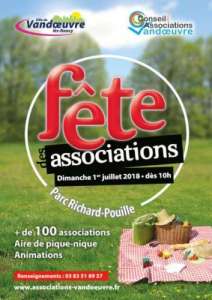 La ville de Vandœuvre et le Conseil des Associations vous donnent rendez-vous pour la prochaine édition de la Fête des Associations, le dimanche 1er juillet de 10H à 18H au parc Richard Pouille. Entrée et animations gratuites.