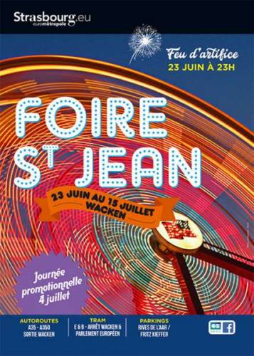 Cette année encore, la Foire Saint Jean aura lieu au Parc des Expositions du Wacken, du samedi 23 juin au dimanche 15 juillet.