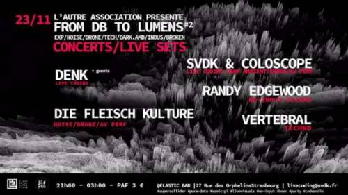 DENK va nous livrer une performance de live coding basée sur Sonic Pi oscillant entre musique arythmique, techno berlinoise codée et d’autres styles propres à l’écriture de lignes de codes interprétés en directe..