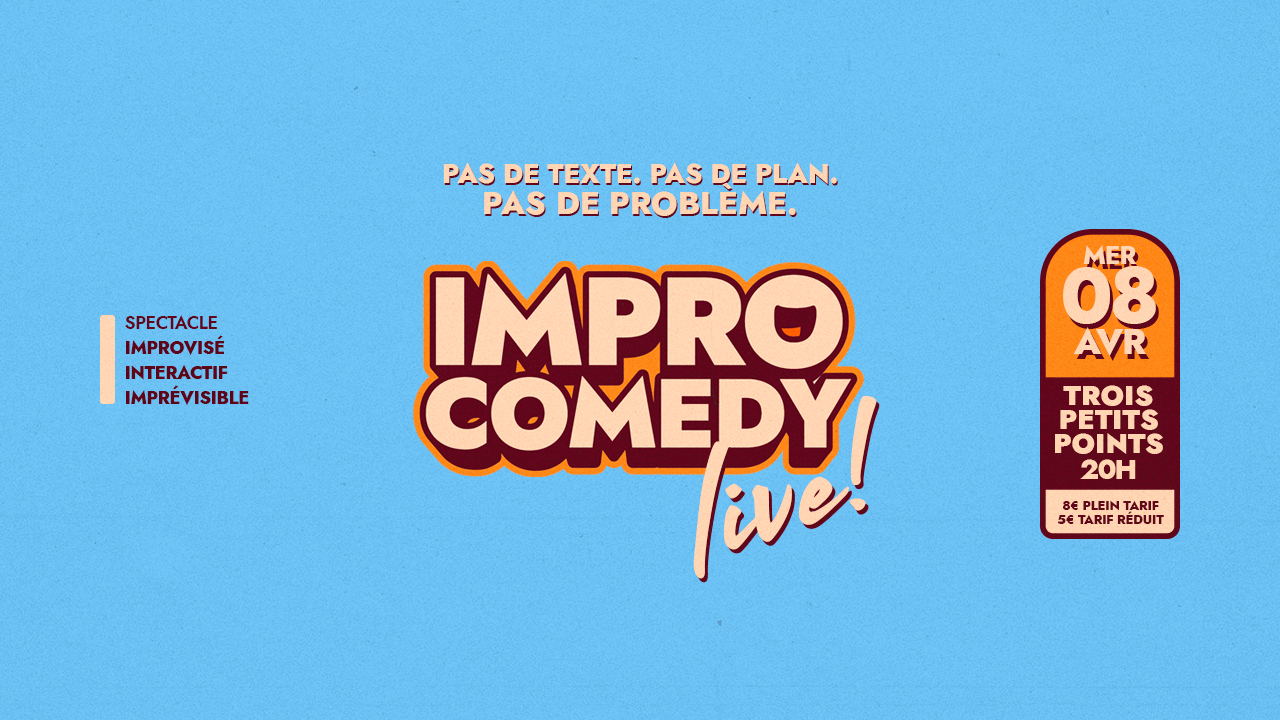 Pour cette nouvelle date aux Trois Petits Points, on va mettre un peu d'aléatoire là dedans. Rien de tel qu'une bonne dose de chaos et de prise de risque pour vous faire rire.