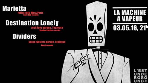 Marietta (reflux-folk, Metz/Paris) + Destination Lonely (zouk love garage, Toulouse) + Dividers (space western garage, Toulouse)