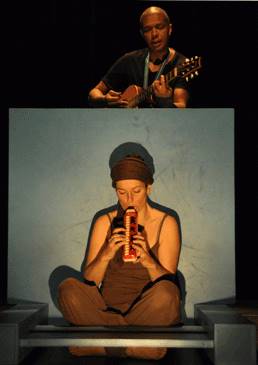 Soudain, ils aperçoivent une tache bleue, qui s’avère être une chaise. Comme ici il n’y a rien à faire, ils en inventent toutes les utilisations possibles. Ainsi, ils deviennent musiciens, acrobates, équilibristes ou magiciens.