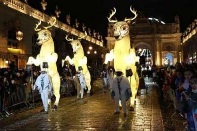 À la tombée de la nuit, saint Nicolas viendra saluer depuis le balcon de l’Hôtel de Ville les enfants et leurs parents après avoir défilé, accompagné des chars des communes de la Métropole du Grand Nancy, des compagnies et d’une centaine d’enfants des MJC nancéiennes.