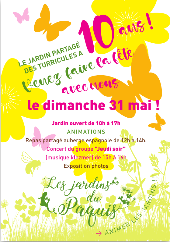 Pour célébrer cela, nous organisons le dimanche 31 mai une fête à l’occasion des 10 ans du jardin.