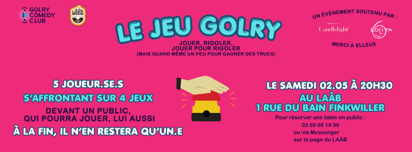 Ce samedi 02 mai, le LAÀB et le Golry Comedy Club lancent un nouveau concept : "Le Jeu Golry".