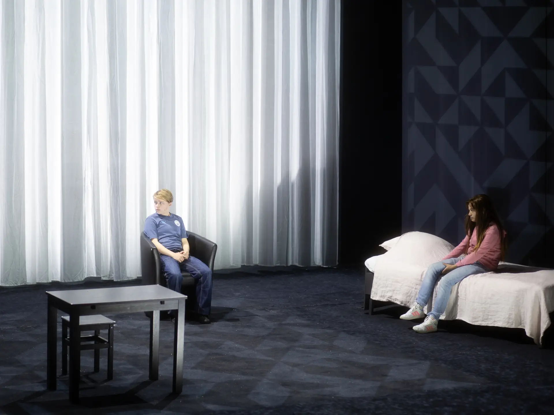 [tr] Çocukluk, yetişkinlerin sözlerine karşı ne tür bir güç ortaya koyabilir? Joël Pommerat, Külkedisi oyununda olağanüstü olanın kodlarını sorgulayıp yapıbozuma uğratırken, bu yeni eserinde onları olduğu gibi, tüm ciddiyetiyle ele almayı hedefliyor. Yazar, gerçek dünyanın kurallarını alt etmek zorunda kalan iki çok genç kızın, yetişkinlerin koyduğu yasa- lardan sıyrılarak yıkılmaz bir dostluk bağı kurma çabasını konu alan bir karşılaşmayı hayal ediyor.