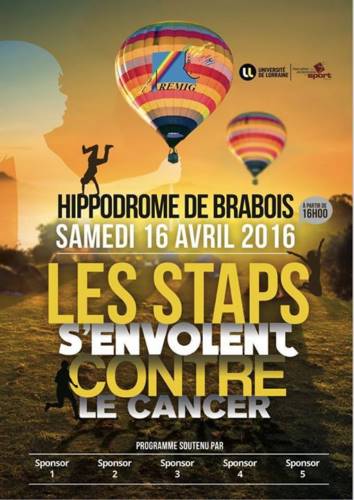 Samedi 16 avril 2016, l’Université de Lorraine, les étudiants de la Faculté des Sciences du Sport de Nancy, en partenariat avec l’association AREMIG (aide aux parents et accompagnement des enfants malades de l’hôpital Nancy-Brabois) ainsi que l’Hippodrome Nancy-Brabois, organisent pour la troisième fois le projet Les STAPS s’envolent contre le cancer.