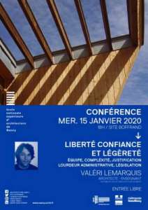 Sur la base de 2 projets réalisés récemment, Valeri Lemarquis aborde dans sa conférence deux manières de concevoir et de réaliser un projet, deux manières de communiquer avec les partenaires qu’il soient issus du milieu de la Maîtrise d’Ouvrage ou de la Maîtrise d’?uvre. Le conférencier va tenter de mettre en exergue la légèreté créative, les relations privilégiées de confiance pour lesquelles il a choisi ce métier, et la complexité d’un travail en partenariat qui nécessite des justifications permanentes des intervenants et doit faire face à la lourdeur administrative qui en découle.