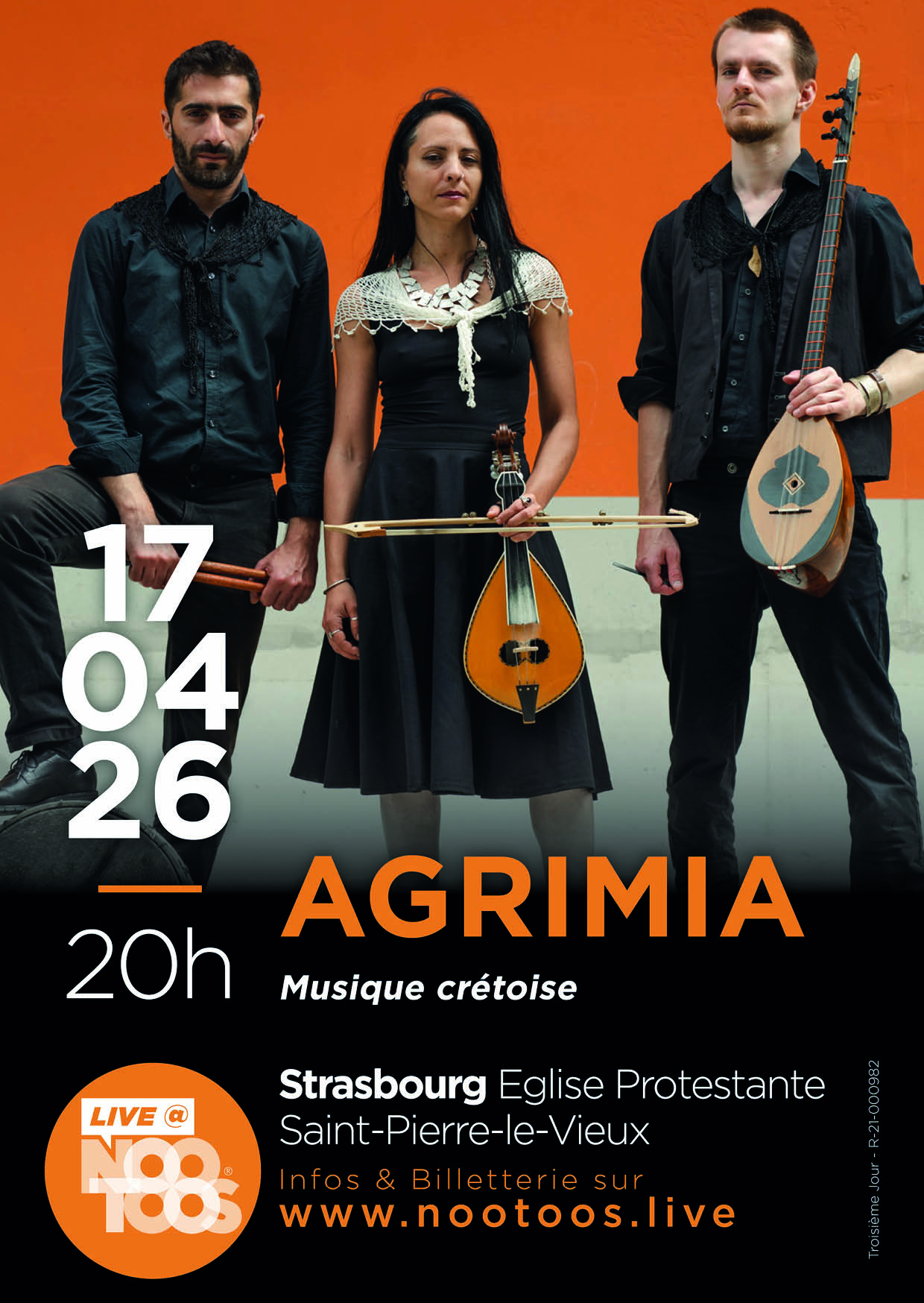 Rassemblé autour d'une passion commune pour la culture crétoise, ce trio strasbourgeois vous raconte l’histoire de l’île à travers ses traditions, mêlant ainsi leurs bagages culturels respectifs. Attaché aux racines de la musique, Agrimia en propose une vision néanmoins moderne à l'aide d'un riche panel d'instruments typiques de l’île comme la lyra, le boulgari ou le laouto.
