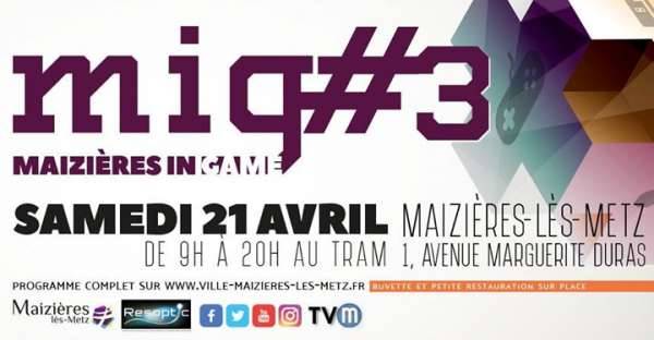 Samedi 21 avril, la Ville de Maizières-lès-Metz et Resoptic ouvrent la troisième édition du Salon dédié aux jeux vidéo : ’Maizières In Game’, dit ’le MIG’. Le MIG s’adresse à un public très large, des petits aux plus grands, qui peuvent découvrir les dernières nouveautés ludiques, des expériences de jeu inédites, mais aussi retrouver les consoles et jeux de leur enfance.