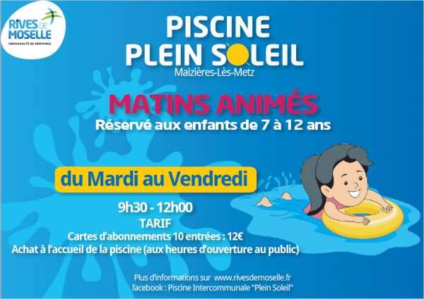 Pendant les vacances, la Piscine Intercommunale "Plein Soleil" propose les MATINS ANIMES, pour vos enfants de 7 à 12 ans.