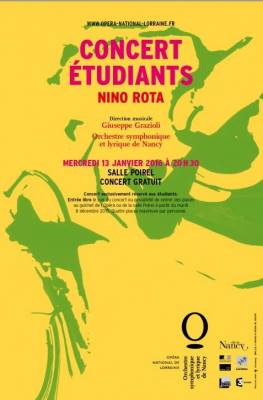 * Concert exclusivement réservé aux étudiants. Entrée libre le soir du concert ou possibilité de retirer des places au guichet de l’Opéra ou de la salle Poirel à partir du mardi 8 décembre 2015. Quatre places maximum par personne.