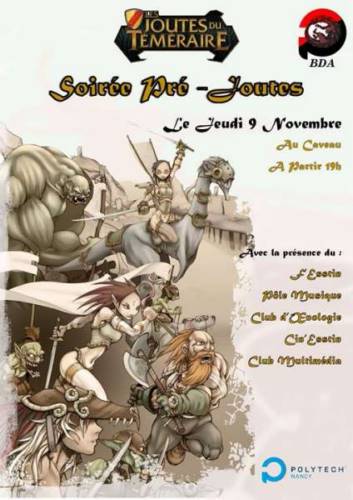 Le BDA vous invite à sa première soirée de l’année en partenariat avec les Joutes du Téméraire, le 9 novembre au Caveau à partir de 19h.