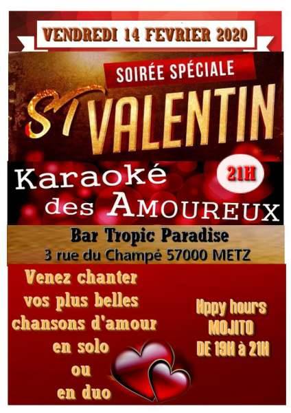 En amoureux, , en célibataires, en groupe , ou en toute amitié, Venez chanter l’amour en duo , ou en solo au KARAOKE, de la St Valentin , au TROPIC PARADISE , à partir de 20H , pour chanter des chansons choisies par vous, sans passer par un catalogue, ?