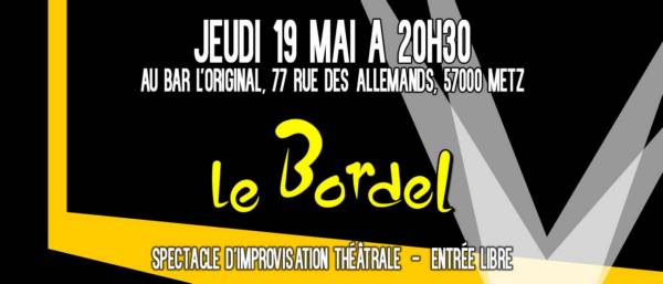 Après nos péripéties nancéennes, nous sommes de retour sur Metz à L’Original Bar (face à la porte des Allemands) le jeudi 19 mai pour un Spectacle d’Improvisation Théâtrale nommé Shut the Set Up! avec le vénérable Cédric Lacrouts.