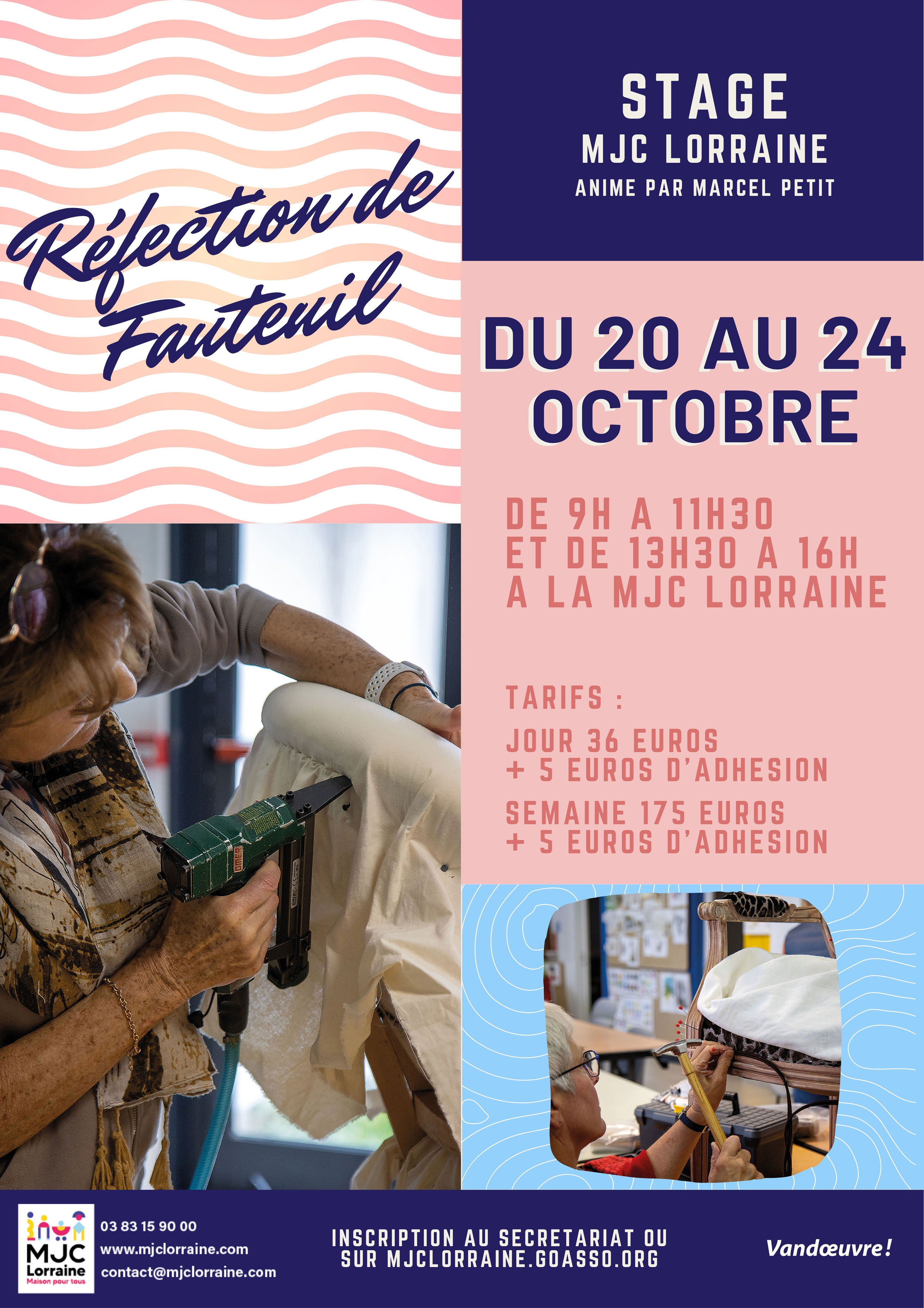 Alors n'hésitez pas à vous inscrire à notre stage de réfection de fauteuils proposés à la MJC Lorraine !