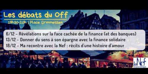 C’est ce qu’on appelle la finance solidaire et nous vous avons concocté une table-ronde d’exception mardi 13 décembre, Place Grimmeissen à Strasbourg, dans le cadre du marché Off pour vous faire découvrir concrètement à quoi ça sert et comment ça marche !