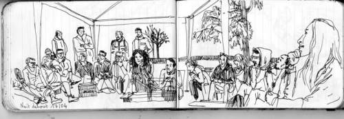 17h/18h: le groupe ayant suivi le stage "désobeissance civile" nous fait une restitution: notion de non-violence, méthodologie de l’action & de l’après-action et aspect juridique