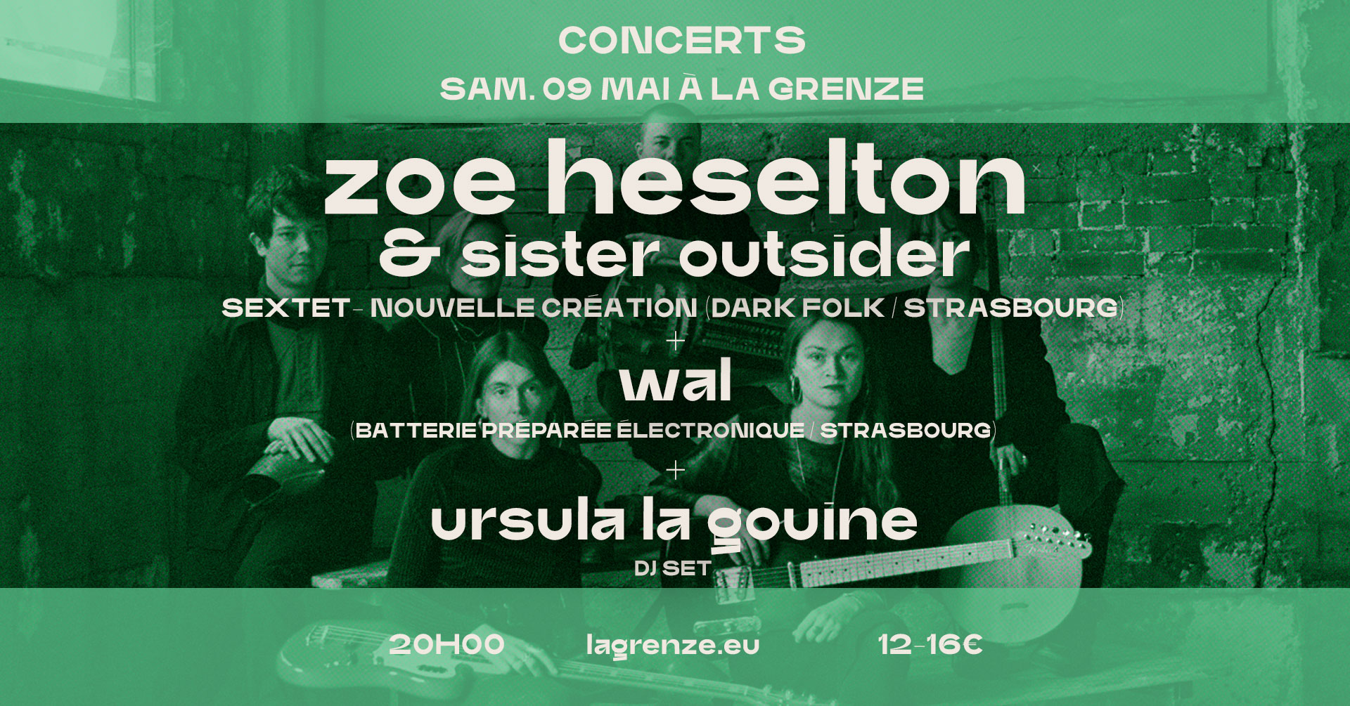 Zoe Heselton & Sister Outsider + WAL + Ursula La Gouine en concert à La Grenze le samedi 09 mai 2026 à 20h00, 23 rue Georges Wodli à Strasbourg