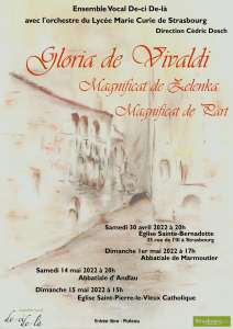 Après deux ans de silence contraint, notre ensemble vocal De-ci, De-là, dirigé par Cédric Dosch, est heureux de vous convier aux concerts qu’il donnera dans quatre églises et abbatiales de Strasbourg et ses environs du 30 avril au 15 mai prochains.