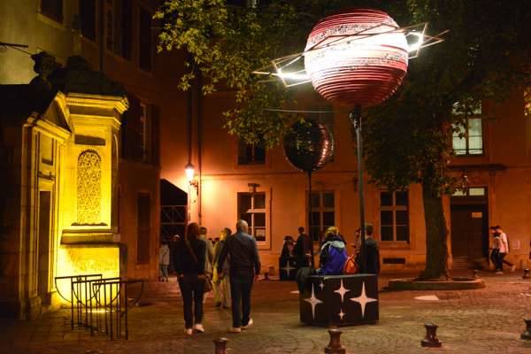 Cet été l’association de scénographie Franc Cartons s’immisce entre les feuillages et les pavés de la place Sainte-Croix.