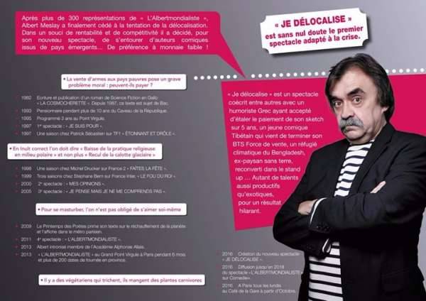 Après plus de 300 représentations de l’Albertmondialiste, Albert Meslay revient avec un nouveau spectacle ’Je délocalise’.