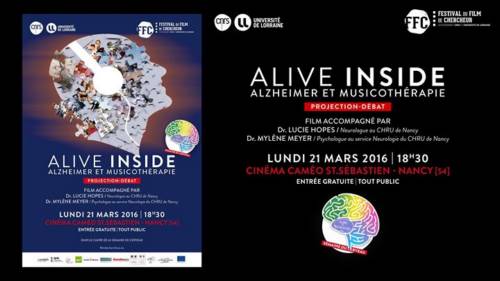 Film Alive Inside, alzheimer et musicothérapie, suivi d’un débat avec Dr Lucie Hopes; neurologue au CHU de Nancy, et Dr Mylène Meyer, neuropsychologue au CHU de Nancy