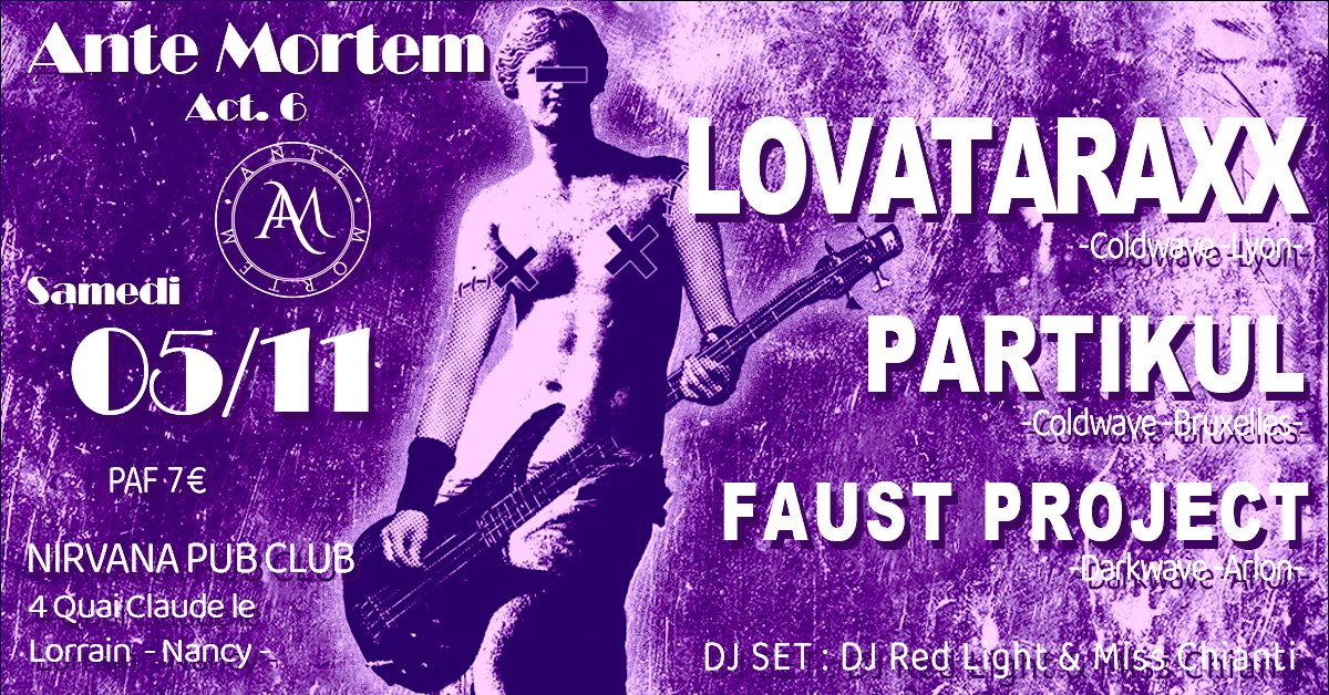 Deux dj sets coldwave, post punk, darkwave, batcave viendront clôturer cette soirée avec DJ Red Light et Miss Chianti.