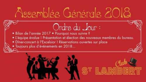 C’est avec plaisir que toute l’équipe du Club Saint-Lambert vous invite à notre Assemblée Générale 2018 !