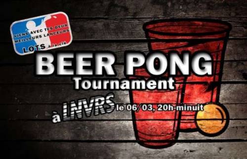 et viens participer au grand tournoi de Beer Pong à L’Envers Club le mardi 6 mars, de 20h à minuit !