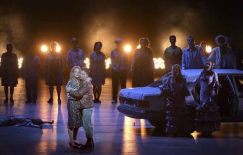 « Jamais Carmen ne cèdera, libre elle est née, libre elle mourra », lance l’héroïne de Bizet à Don José à la fin de l’opéra. Cette irrépressible liberté, couplée à la nécessité de vivre toujours plus intensément sur le fil du rasoir, la mise en scène de Calixto Bieito en rend compte comme nulle autre. Du personnage de Mérimée, Carmen conserve chez Bieito les contours profondément ibériques et le tempérament brûlant de celle qui vit de petits trafics. Mais l’oiseau rebelle est foncièrement de notre époque. Vamp aguicheuse et insoumise, témoin de la brutalité masculine et sociétale, elle roule à grande vitesse, pressée d’exister.
