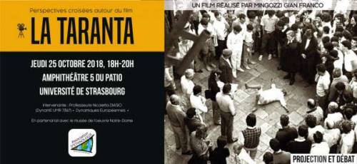 L’Association d’ethnologie de l’Université de Strasbourg a le plaisir de vous convier à la soirée projection-débat du film « La Taranta » de Gianfranco Mingozzi.